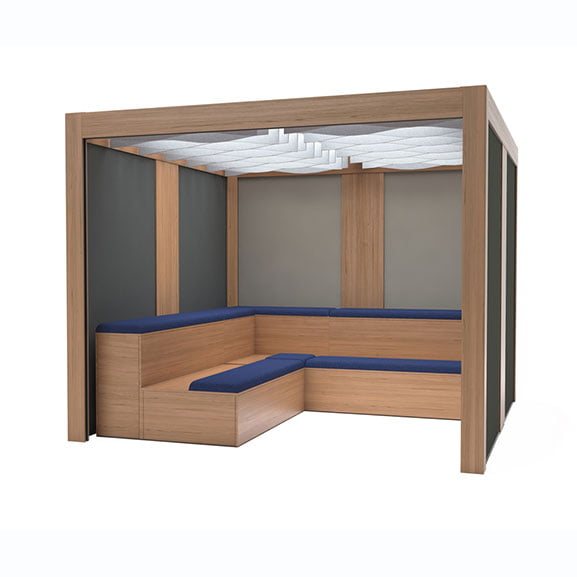 The Collaborate Rooms Office Pod range offer sleek collaborative workspace solutions. These collaborative office pods require no planning permission as there are no fixed walls which creates a flexible, reconfigurable collaborative seating structure.